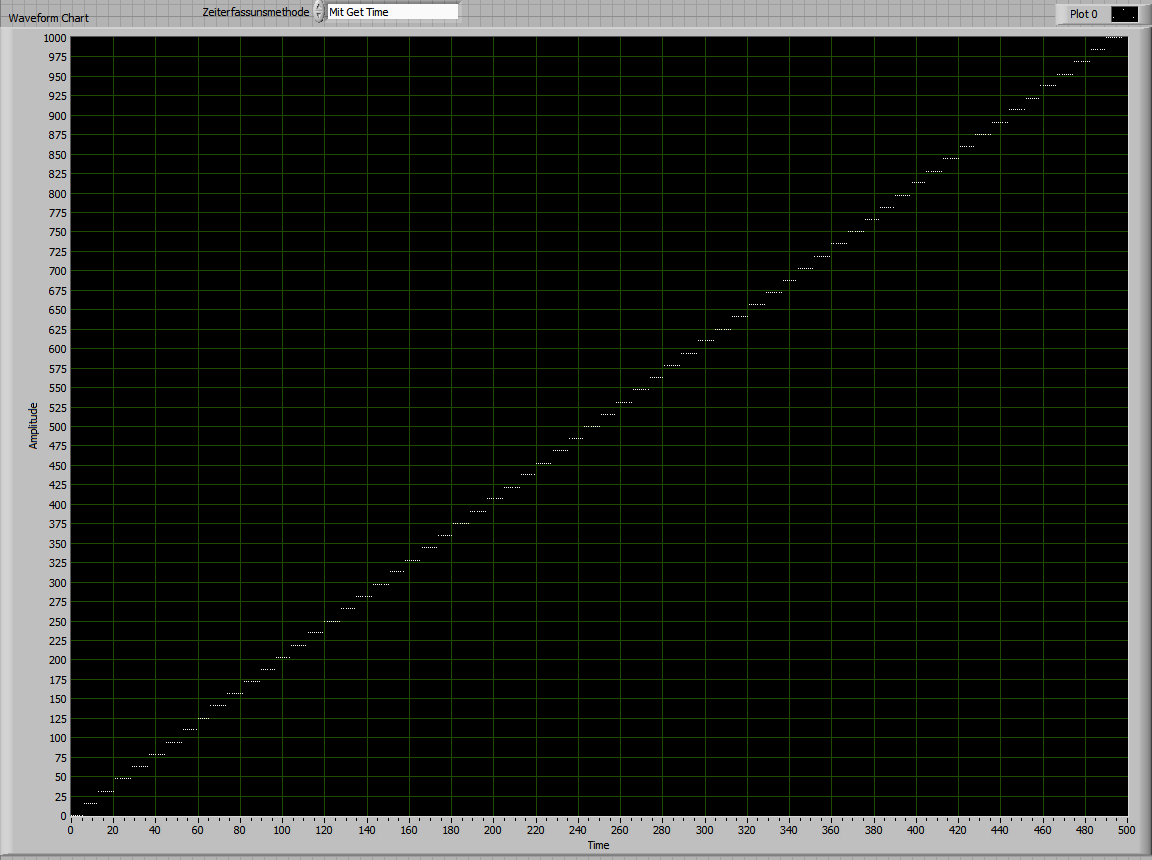 Wa Du beschreibst, kann ich an Deinem VI weder beobachten noch wäre es plausibel. Das Updaten eines Graphen oder Diagramms dauert mehrere Millisekunden, und es ist noch mehr, wenn Du die automatischen Skalenanpassung aktiviert hast. Demzufolge ist die Laufzeit für einen Schleifendurchgang erheblich größer als der Timerwert von 1 ms. Und das zeigt die elapsad Time auch an, also viel zu große Werte und nicht wie Du sagst zu kleine Werte.