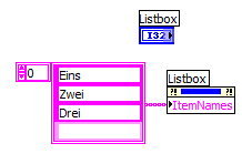 ich komm aber nicht zurecht und bitte um deine Hilfe. Ich muss im rahmen einer Aufgabe also aus einem Array von String, die Elemente per Mausklick auszuwählen können und diese in ein anderes Array anzeigen lassen, Ziel ist es Messgrößen auszuwählen und die entsprechende Werten von einem Can Bus anfordern und diese in einer Datei speichern. Ich habe mir überlegt zuerst die Auswahl zu gestalten wie du es im VI listbox_selection gemacht hast (Siehe #beitrag8) . Kannst du mir bitte helfen?