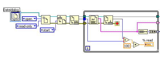 Die VIs "Read from Text file" und "Read from Binary file" lesen das komplette File ein, erkennen das Dateiende und brechen automatisch ab.