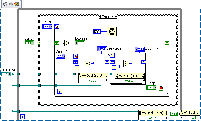 Prinzipiell solltest du eine Funktion erst im kleinen Testen, wenn du dir nicht 100% sicher bist, dass du genau weisst wie es abläuft. Sprich, wenn du denkst, dass eine Eventstruktur deine Aufgabe lösen kann, du aber die Funktionsweise nicht genau kennst, dann implementier nicht zuerst all deinen Code, sondern mach dir schnell ein BeispielVI und teste die Funktionalität dort im kleinen. So kannst du VIEL Zeit sparen, wenn du dann feststellst, dass es so nicht geht und du die Stundenlange verdrahtungsarbeit umsonst gemacht hast....