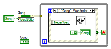 Es handelt sich hier um eine Art Nonsens-Code - es geschieht garantiert keine Wertänderung. Aber das ist egal, denn bei jeder Zuweisung an den Eigenschaftsknoten "Wert(SGL)", egal ob es sich um den alten oder einen neuen Wert handelt, wird das Ereignis ausgelöst.