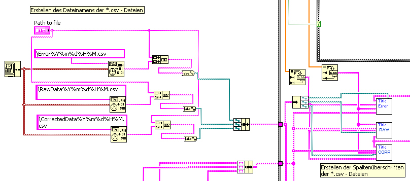 P.S.: Die Write-VIs, die du in ersten Screenshot verwendest, sind schon in allen 8er Versionen eigentlich veraltet. Vielleicht wäre es gut, auch hier mal aufzuräumen. Alternativ ein Tip zur Fehlersuche, erstelle Indikatoren der Dateipfade im Frontpanel, und schau einmal, was da so alles drin steht.