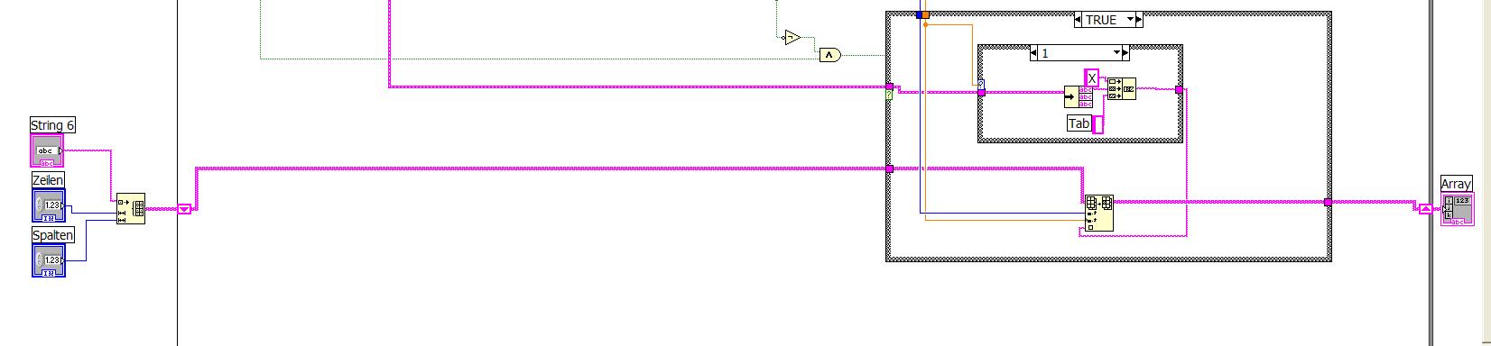 ich bin absoluter LabVIEWneuling und brauche dringend Hilfe (bin am verzweifeln). Ich habe dass Problem dass ich in einer for-Schleife 4 Speicherzellen (Leitungen) habe - in der ersten steht ein Wert den ich speichern will, in zwei aneren eine Zeilen und eine Spaltenangabe in welche dieser Wert in einem Tabelle/Array gespeichert werdn soll, und in der vierten ein boolscher Wert der angiebt, wann in diesen Speicherzellen etwas Sinnfolles steht (und gespeichert werden soll). Bei jedem Schleifendurchlauf wenn dieser Wert 4 auf "true" steht soll nun der Wert der in Zelle 1 in einen Array geschrieben werden - an der stelle die Zelle 2 und 3 angeben. Autoindizierung funktioneirte daher nicht, da ja nicht jeder Wert gespeichert werden soll. auch mit Schieberegistern ist das problem nicht lösbar, da der zu erstellende Array ca 5 MB groß ist (5*250000), und die Schleife zeimlich heufig durchläuft (ca2 mio.). Das heist wenn ich das problem mit schiebereigister lösen will braucht dass ewig (im bereich tage). Kennt jemand eine Möglichkeit einen Wert aus ene For-Schleife heraus an einen Array zu übergeben ohne den Array zu offnen??? Vielen dank für eine Antwort.