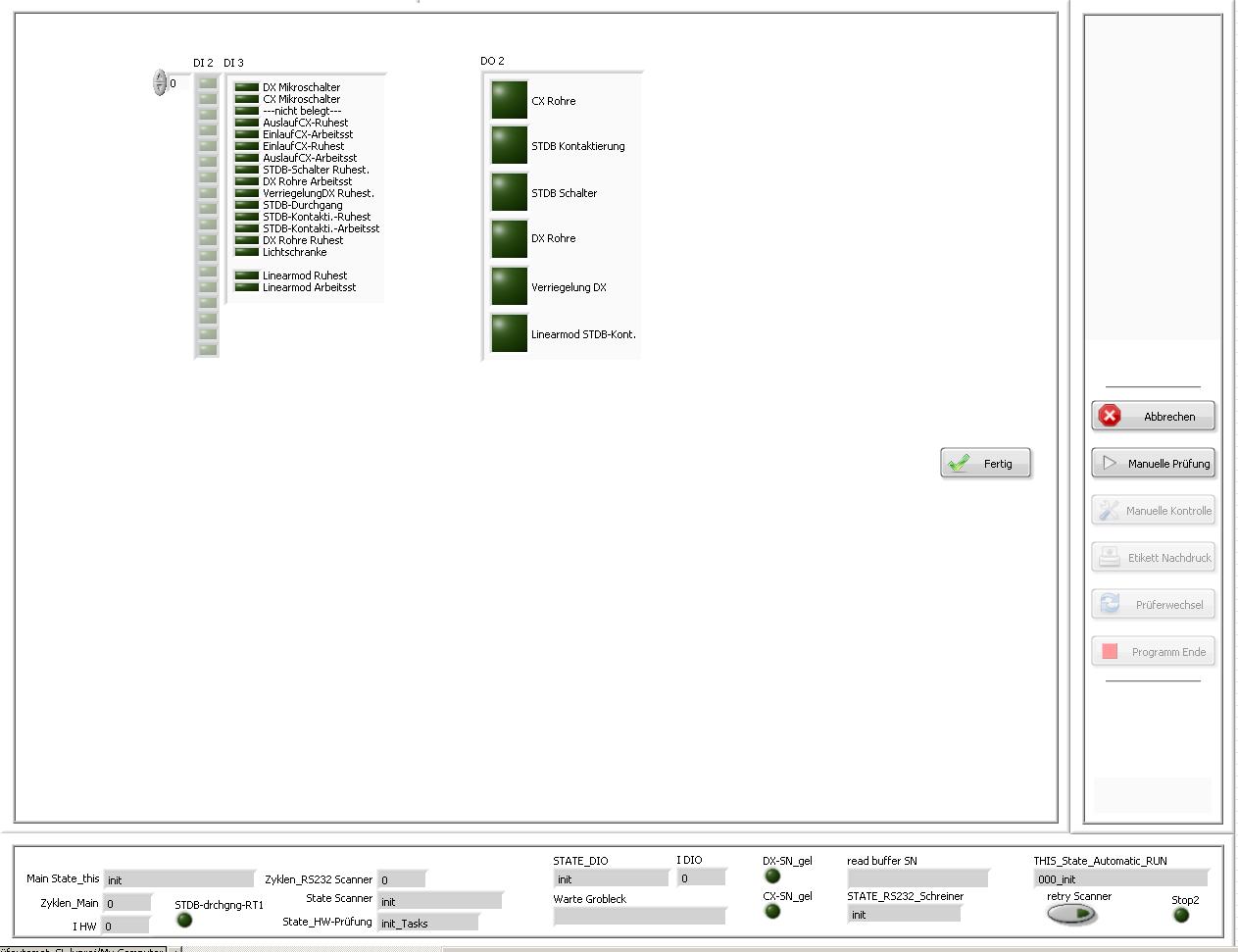Ich habe noch ein anderes Problem bei dieser Software: Sie "läuft nicht rund". Bedeutet: Wie bereits erwähnt habe ich eine Main-Loop und 5 parallel laufende Loops. Das FP ist über eine Tab-Control organisiert. Zu debugging-Zwecken lasse ich mit die Iterationen der einzelnen Schleifen ausgeben. Bei aufruf einiger bestimmter Seiten des Tab-Controls stockt die Software, deutlich daran zu sehen, dass die interationsanzeigen nicht mehr kontinuierlich, sondern stockend hoch laufen, sie machen also Sprünge von meinetwegen 512 auf 523. Der einzige Unterschied ist aber wirklich, dass unterschiedliche Seiten im Tab-Control aufgerufen werden, die States-Machines bleiben in den selben States.