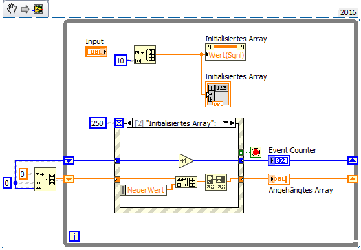 Ich habe dein Beispiel nachgebaut, das funktioniert soweit bis auf den Eventzähler. Der wird mit der Frequenz der While-Schleife inkrementiert. Um das zu veranschaulichen wird die Schleife alle 500ms aufgerufen. Ist es möglich, das Beispiel so zu verändern, dass nur bei tatsächlichen Wertänderungen die Werte in das 2D-Array geschrieben werden, damit ich keine doppelten Werte bekomme?