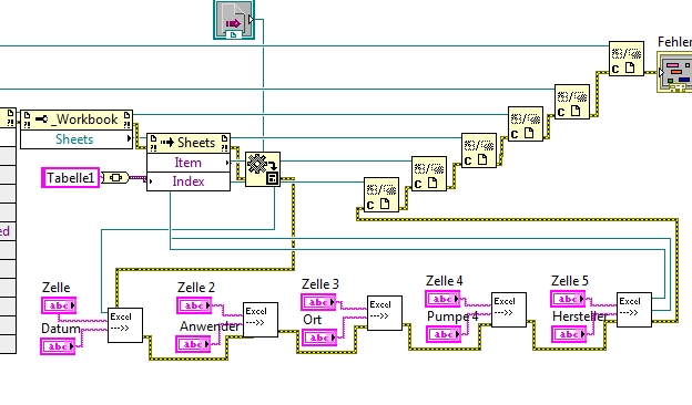 Der Dateiname soll aus einem festen String "Messbericht", dem aktuellen Datum (das wird bereits in meinem VI erzeugt und ausgegeben und einer laufenden Nummer (falls mehrere Messungen am gleichen Tag stattfinden). Genau diese laufende Nummer macht mir grad Kopfzerbrechen, denn ich weiß nicht wie sie erzeugt wird. Kann mir da jemand helfen?