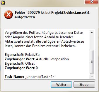Bin einen Schritt weiter. Habe einen minus wert eingegeben und so hat das DAQ einen Fehler angezeigt der die möglichen Werte anzeigt. Minimum Wert für Samples ist 9 ?!? Und die für die Anzahl Messungen 10K.