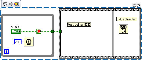 eine EXE entspricht einem VI, das gestartet wurde (über den Pfeil in der Menüleiste).