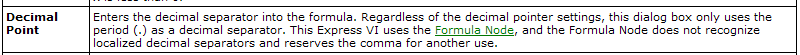 Außerdem kannst du LabVIEW auch umstellen (irgendwo in den Optionen), so dass du immer einen Punkt als Trennzeichen eingeben musst.