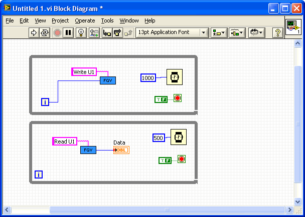 ' schrieb:Achso - hm.. und was passiert, wenn in zwei parallelen Schleifen auf dieselbe FGV zugegriffen wird? Wartet Labview dann automatisch immer, bis die FGV "wieder frei ist" - also bis sie keiner mehr benutzt? Oder gibt das einen Fehler?