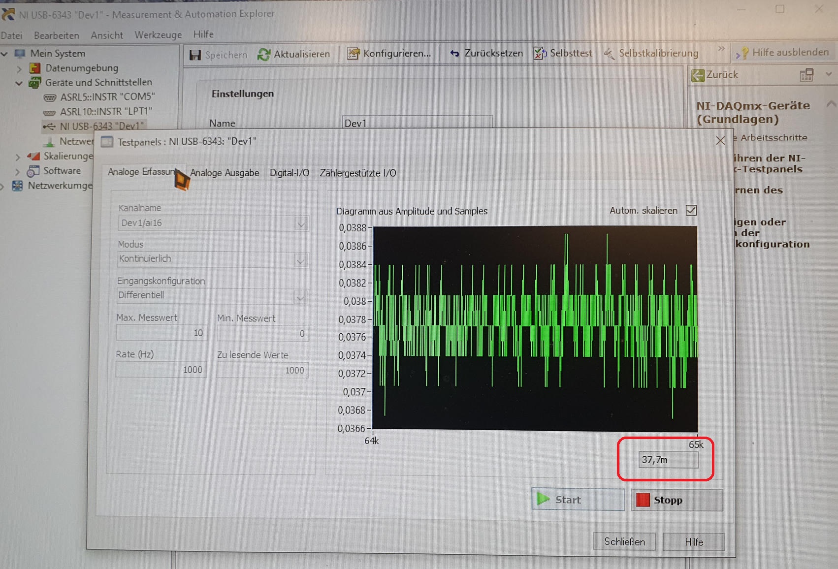 (04.03.2021 10:30 )GerdW schrieb: Der differenzielle Eingang/Messkanal an sich scheint ja zu funktionieren, wenn er im MAX-Testpanel das erwartete Signal anzeigt.