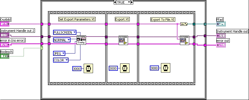 So, auf dem Model ohne B klappt es Bilder der Messkurven als *jpg auf Platte zu schreiben (mittels export.vi und export to file.vi des Plug&Play Instrumentreibers Namens tktds5k / herunter zu laden von http://www.ni.com oder http://www.tek.com )!