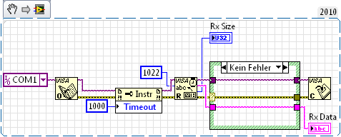 ich empfange auf der seriellen Schnittstelle 1022 Bytes. Sind diese nicht innerhalb 1 Sekunde verfügbar (Timeout), so soll eine Fehlermeldung ausgegeben werden. Mein Ziel war es, die Fehlermeldung (Source) des Fehlerclusters zu nehmen. Funktioniert eigentlich auch. Jetzt habe ich festgestellt, lege ich eine Sonde auf das Cluster, so wird in der Fehlerbeschreibung der Sonde eine viel detaillierte Aussage zur Ursache getroffen und angezeigt. Kann ich diese (speziell der Text nach Mögliche Ursachen) auch im VI ausgeben. Dort wird nur die Meldung "VISA: Lesen in ..." ausgegeben, ohne den Text für mögliche Ursachen. Aber genau dieser wäre für mich entscheidend.