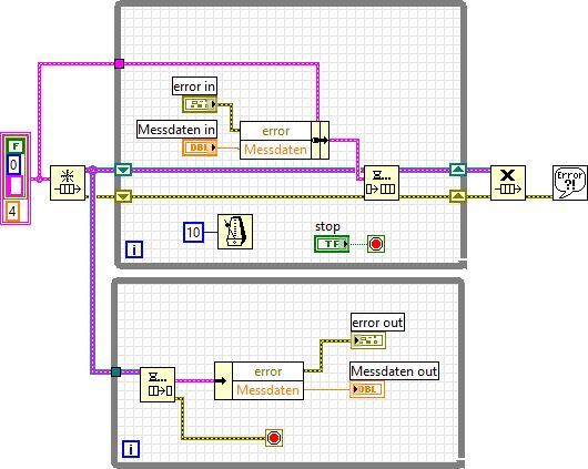 Ich hatte das benötigt da in meinem Programm in der einen Schleife die die Messungen und somit auch die Steuereung der Messgeräte (VISA) läuft und in der zweiten Schleife die Anzeige der Messdaten, Protokollerstellung...