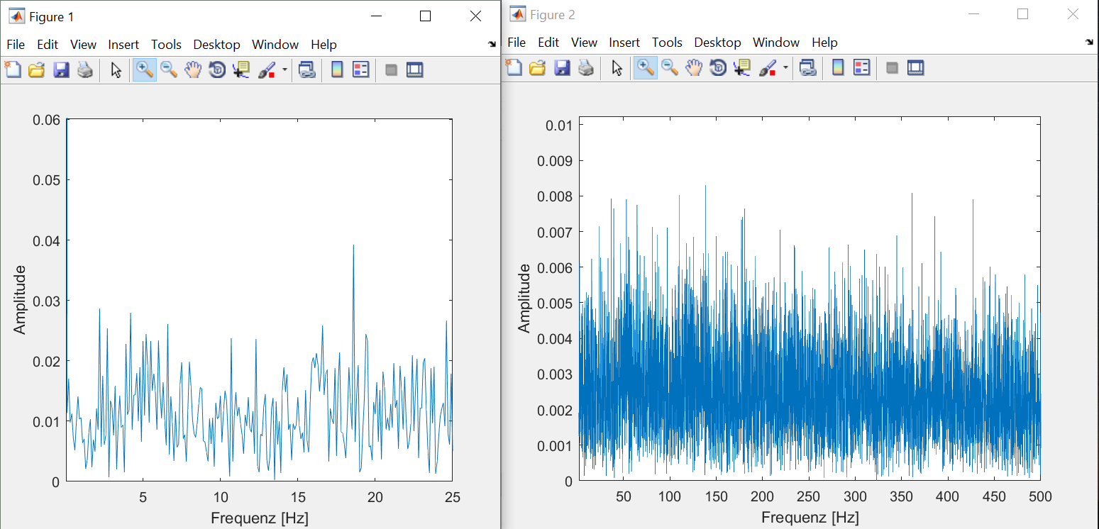 Tut mir leid mein Fehler... Wenn man bei Matlab reinzoomt zum Ursprung dann erkennt man es leichter. Es ist ein ganz steiler Abfall von 0 auf 0,1 zu erkennen. Vl erkannt man es im Schreenshot, wenn man am linken oberen Rand des Diagramms schaut. In diesem Bereich erkennt man ein eine deutlich höhere Amplitude, die auch meiner Meinung nach das stärkerer Rauschen verursacht. Der DAQ 6008 hat generell ein Rauschen wenn ich mich nicht irre. Was meinst du?