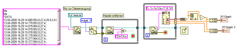 also zuerst datum und zeit, und dann noch druck und 2 verschiedene temperatur kanäle. ich les das jetzt mit der read from spreadsheet file.vi ein allerdings bekomm ich die trennung der einzelnen kanäle nicht hin.