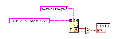 Mir ist schon früher aufgefallen, daß beim Zeitstring der Dezimalpunkt anders behandelt wird als normal. Das sieht man auch schon an der Textdatei im Posting #1: Sie wurde offensichtlich mit Laview generiert, mit Komma els Dezimalzeichen. Das Dezimalzeichen für die Sekundenbruchteile ist aber trotzden ein Punkt!