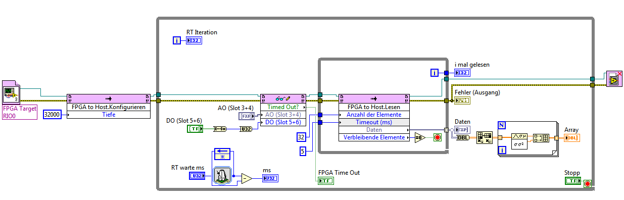 Unter FPGA möchte ich 32 AI Kanäle (2x NI 9205, diff) alle 1 ms samplen und die Daten in einen FIFO schreiben.