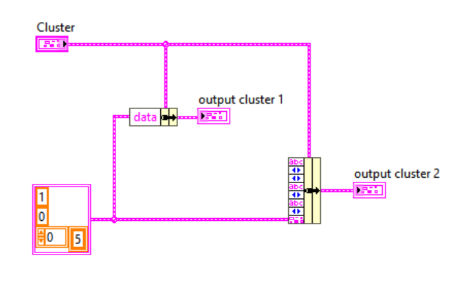 ich habe kaum mal einen Grund dich zu korrigieren, aber das unterstellt, dass man immer alle Clusterelemente verbinden muss. Das ist nicht so. "Bundle" und "Bundle By Name" verhalten sich hier ziemlich gleich. Bei beiden muss der Eingang "Cluster" mit dem Cluster verbunden werden, damit die Daten erhalten bleiben.