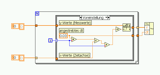 Achso ... wer's braucht. Der neue y-Wert ist ja ein Abfallprodukt in meiner Rechnung; den könnte man rausführen und via autoindexing hat man sein Array. Aber alles nötige an Informationen ist doch in dem Signalverlaufsformat schon drin für die Frequenzanalyse ....