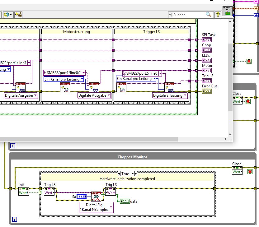 - ich nehme über einen digitalen Eingang einer DAQ-Karte die Flanken einer Lichtschranke auf