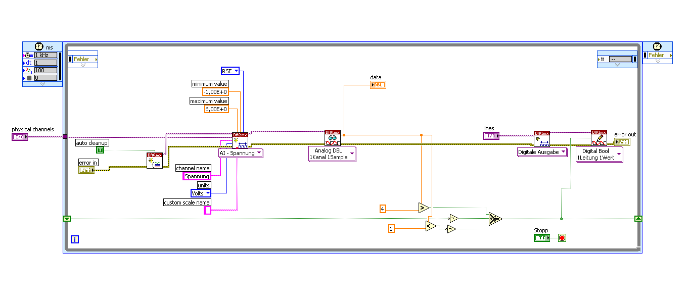 Zitat:Ich arbeite an einem Realtimeprojekt. Nutze ein PXI System mit einer PXI 6259 Karte für AIO und DIO.