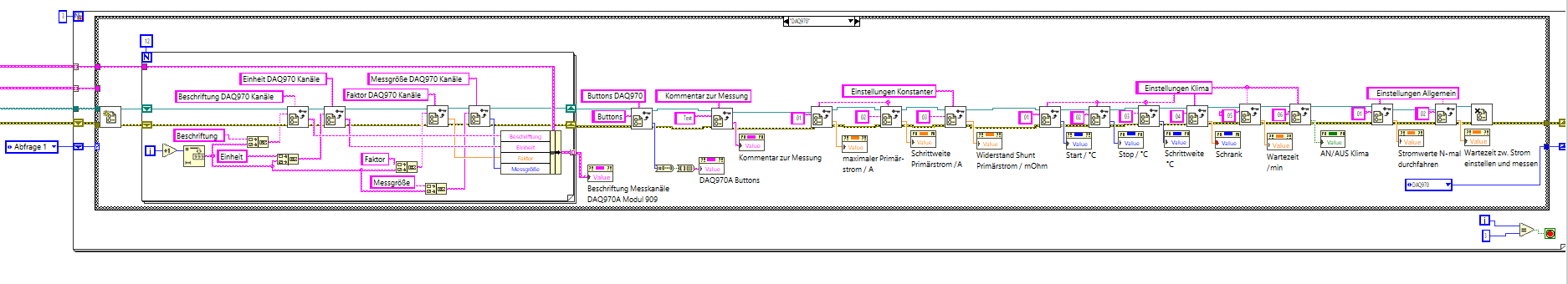 Im Anschluss habe ich erst im Hauptprogramm wieder gesucht und nichts gefunden. Danach bin ich in das neue VI und habe Stück für Stück alles hinzugefügt bis der Fehler aufgetreten ist.