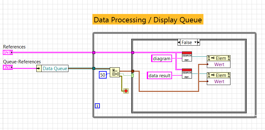 So sieht das konkret im SubVI "Display Queue" aus.