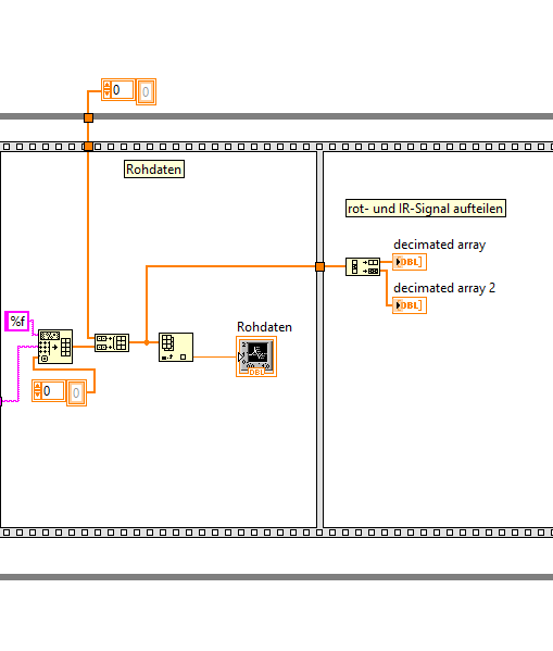 Was ich damit erreichen wollte, dass das obere decimate jedes 2te Signal ab Messwert 0 nimmt und das untere decimate jedes 2te Signal ab Messwert 1 nimmt. Somit ich dachte ich z.B. (Messwert 0 rot, 1 ir, 2 rot, 3 ir usw.).