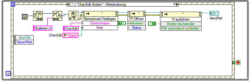 Wesentlich flexibler ist der Aufruf des SUB-VI über Referenzen, hier mal ein Beispiel wie das aussieht: