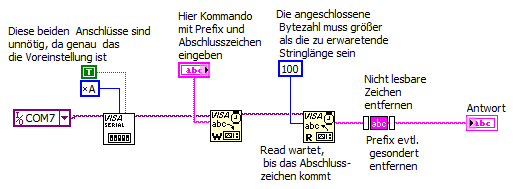 Außerdem gibt es ja noch den Beispielfinder in LabVIEW: BasicSerialReadAndWrite erläutert den korrekten Umgang mit BytesAtPort (auch wenn der meist unnötig ist), AdvancedSerialReadAndWrite den Umgang mit RS232 ohne BytesAtPort!