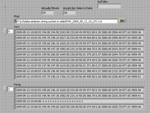 Mein Problem ist jetzt: wie krieg ich es hin wenn mal mittendrin eine Zeile fehlt ( dann hab ich ja insgesamt nur 59 zeilen mit Messwerten ) mir eine neue Textfile zu erstellen wo dann die fehlende Zeile mit dem richtigen Zeitstempel und als messwerte 17 mal nur -1 steht.