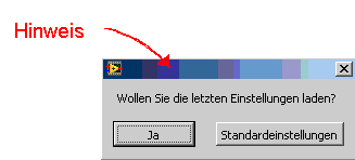 Für quick and dirty verwende ich schon auch mal den eingebauten LabVIEW One Button oder Two Button Dialog, aber wenn es grafisch etwas ansprechender werden muss, dann ist Marke Eigenbau angesagt.