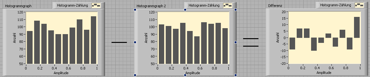 Nein, was mir nicht einleutchet, ist, dass ich bei SeBas Bild nicht die "Würfel" mit den "Histogramm" verbinden kann. Also die orange Linie. Ich brauch da ja ein Bild als Eingang. Kann ich den Histogramm-Eingang (orange) auch mit einem "Build Path" (Grundpfad, Name oder relativer Pfad) verbinden. Die Farbe vom Grundpfad ist ja so grünlich, türkis. Das passt ja leider nicht zusammen. Das heißt: Statt dem "Würfel", den "Grundpfad" des Bildes mit dem Histogramm verknüpfen. Und dann das ja zweimal und anschließend die Differenz der zwei Bild-Histogramme wieder ausgeben (wie bei SeBas Beispiel).