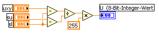 Also in LV selbst würde es so aussehen und ist mindestens genau so schnell wie ein Formelknoten oder ein eingebundenes C-Programm: