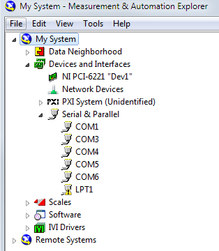 Der Com-Port sollte natürlich im MAX aufgelistet sein. Tut es das?