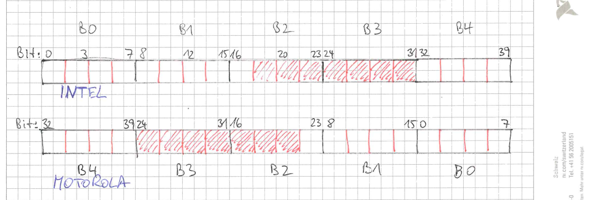 das Startbit (z.b. 18) ist auf INTEL Format bezogen, ich muß es aber ins Motorola Format konvertieren