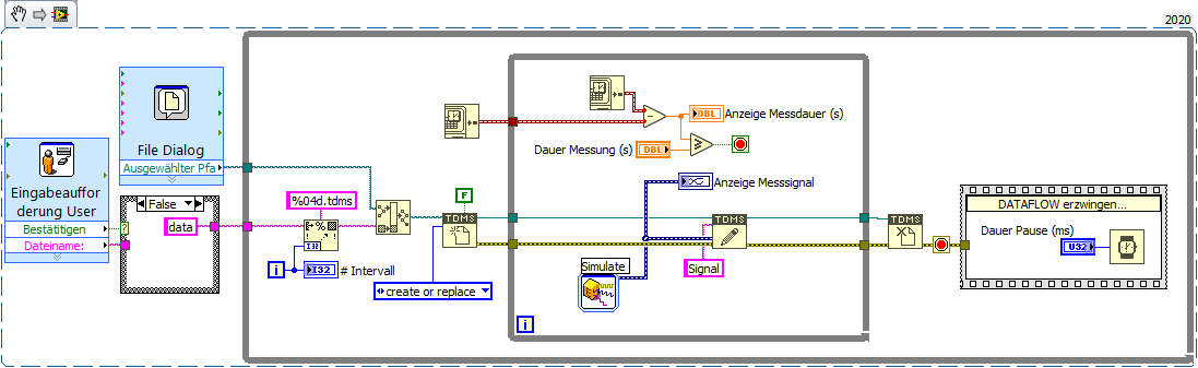 2. Signal für XXX Sekunden aufzeichnen und auf TDMS schreiben