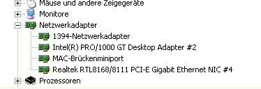 Ich sehe am Kunden-System 2 Netzwerkverbindungen (Bild ZweiNetzwerkVerbindungen=1.png) Die linke heisst (unter dem Mauszeiger) LAN#6 und hat eine Bandbreite von 10MBit, die rechte heisst LAN#7 und hat eine Bandbreite von 1000MBit. Klar, für eine GE-Kamera ist nur LAN#7 OK. Unter Hardware ist nur ein #2 und #4 Adapter zu sehen(Bild NetzwerkHardware.png). An welchem steckt meine Kamera? Am anderen ist das Firmennetz.