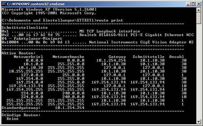 Netzwerkziel Netzwerkmaske Gateway Schnittstelle Anzahl