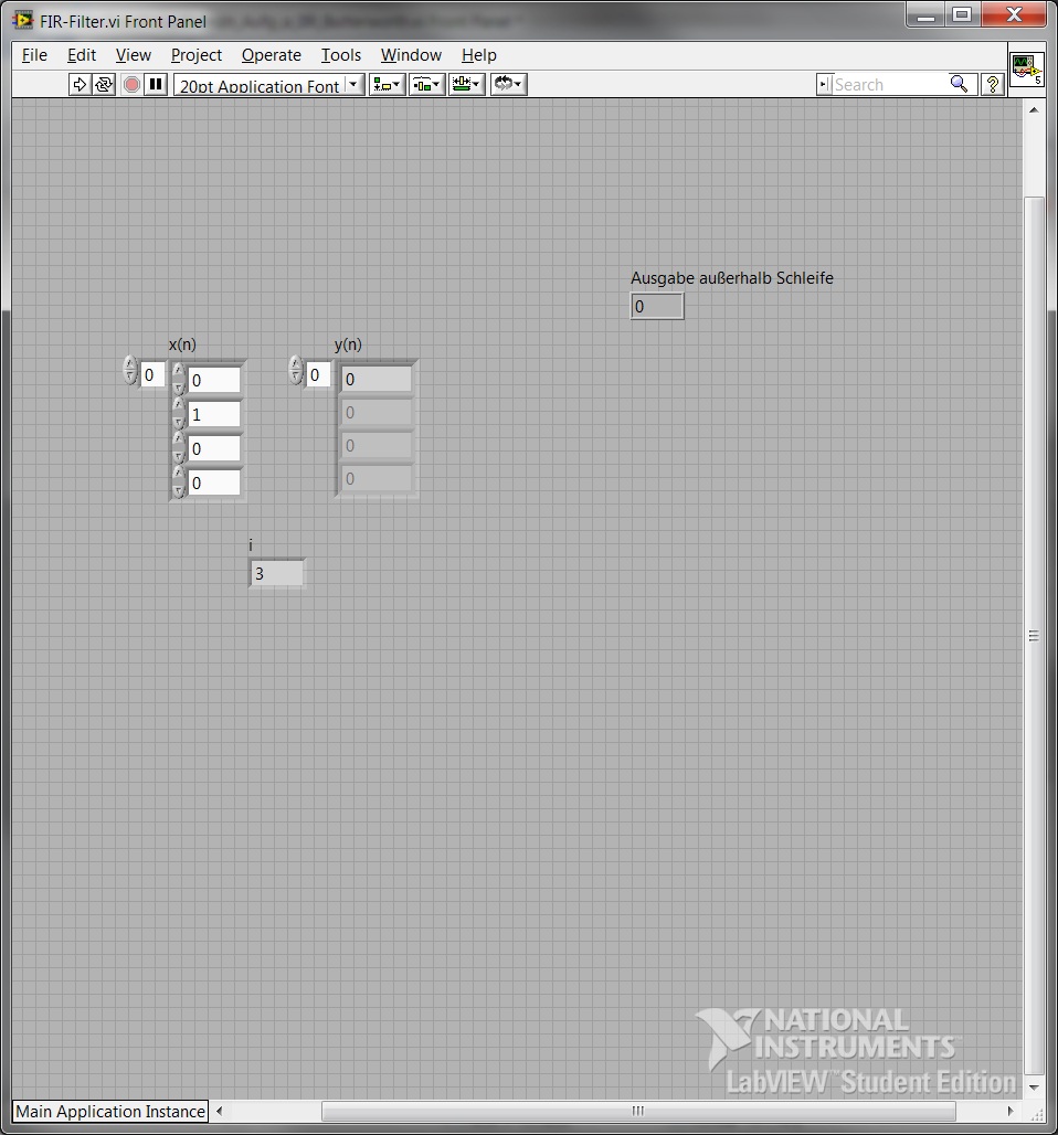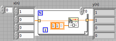 Ich möchte bei einem FIR-Filter das Ergebnis in einem Array anzeigen lassen. Es sollen einfach nur n=4 Schritte gemacht werden und als y(n) in ein Array reinlaufen. Ich schaffe es nun nicht, dass y(n) in die 4 Zellen des Arrays reinläuft, sondern immer nur die erste Zelle überschrieben wird.