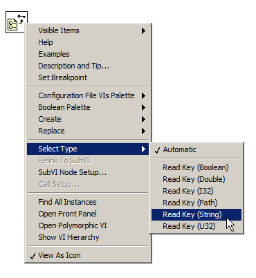 Alternativ wähle über das Kontextmenü die richtige Instanz des polymorphen VI aus: