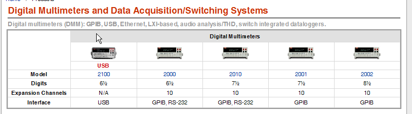 EDIT: Auch auf der Startseite von Keithley steht beim 2001 nichts von RS-232: