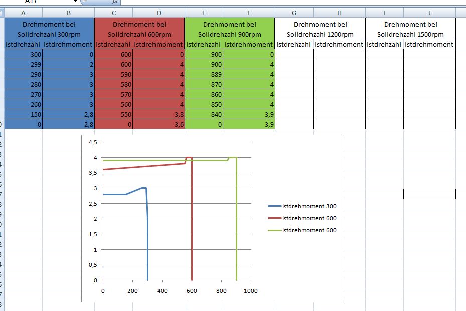Prinzipiell soll das Ganze später so aussehe, dass eine Kennlinie für verschiedene Drehzahlen (Anzahl einstellbar) aufgenommen werden soll. Im Anhang habe ich in Excel ein Diagramm erstellt, von dem wie es später aussehen soll.