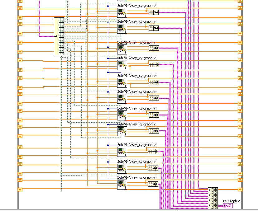 Für jede Drehzahl soll ein neuer Plot im gleichen Diagramm erstellt werden. (X-Achse fix skaliert auf 0...3000rpm). Das xy-graph Beispiel habe ich mir bereits angesehen, jedoch weiß ich derzeit nicht wie ich die for-schleife bei mir integrieren soll um das array zu füllen.