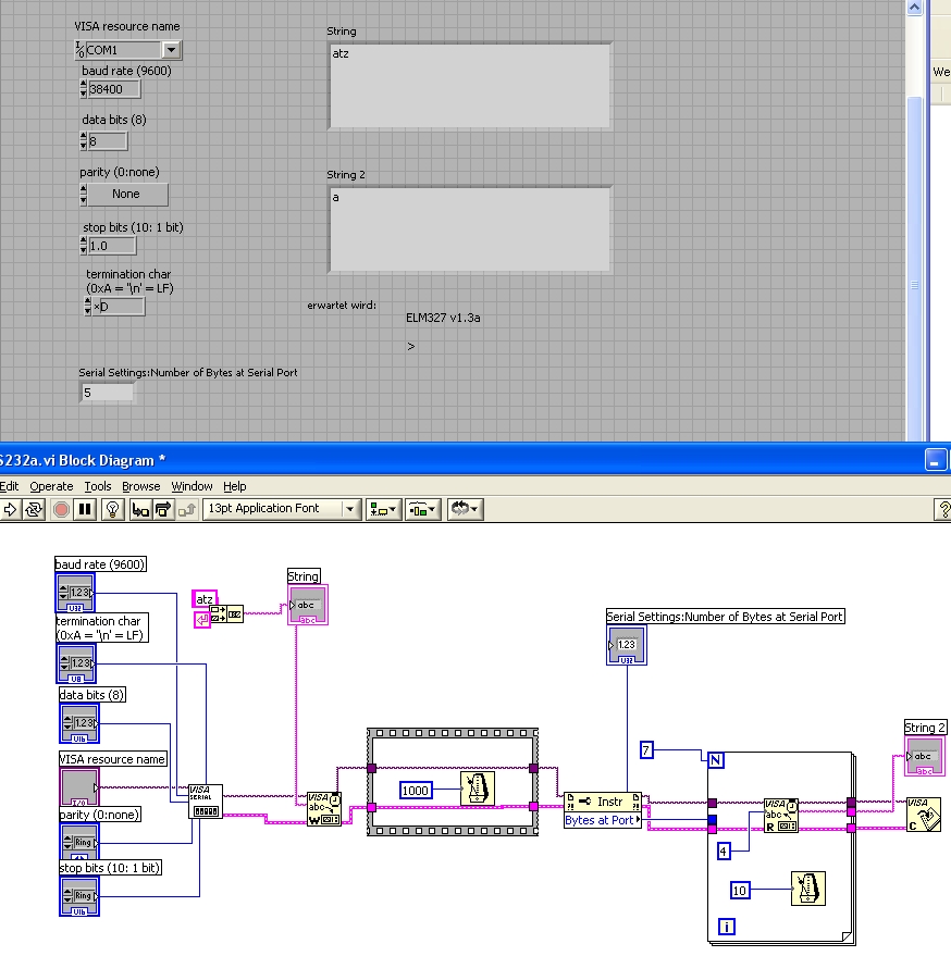 ich versuche mit LabVIEW mit dem OBD Chip über die serielle Schnittstelle zu kommunizieren.