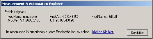Mein Problem ist zuerst Gerät-konfiguration. Wenn ich bei MAX "serial & Parallel" anklicke, bekomme ich Fehlermeldung und MAX wird geschlossen. Anhänge sind die Fehlermeldung.