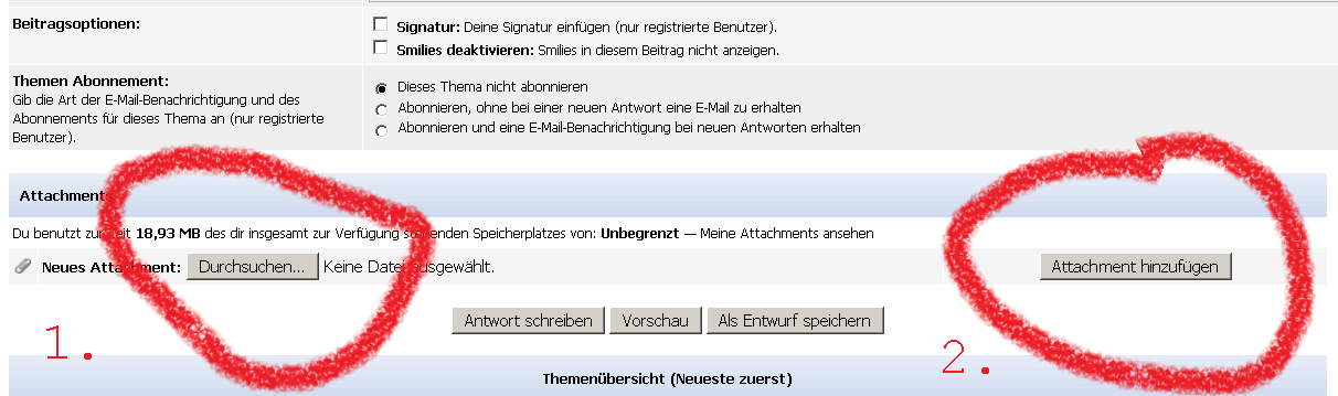 du musst, um ein VI hochzuladen erst das VI über die Schaltfläche "Durchsuchen" auswählen und dann über "Attachment hinzufügen" hochladen.