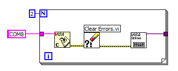 Wenn ich jetzt die serielle Schnittstelle mit dem Vsa konfigurieren möchte, funktioniert das nicht, das heisst ich bekomme eine Fehlermeldung, dass der Port nicht geschlossen werden konnte. Wenn ich das VI ein 2.Mal aufrufe ist alles ok und ohne Fehler unendlich mal aufrufbar.
