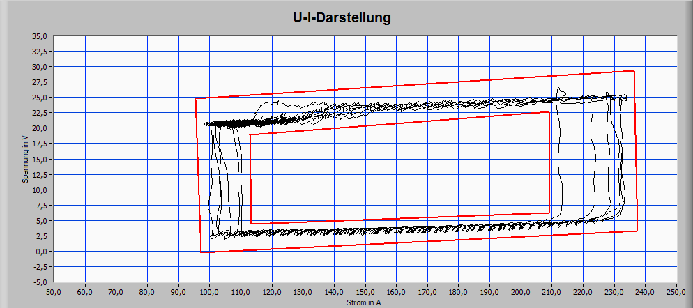 Das Problem ist die Auswertung ob die Meßwerte im Korridor zwischen den beiden Polygonen liegen oder nicht.